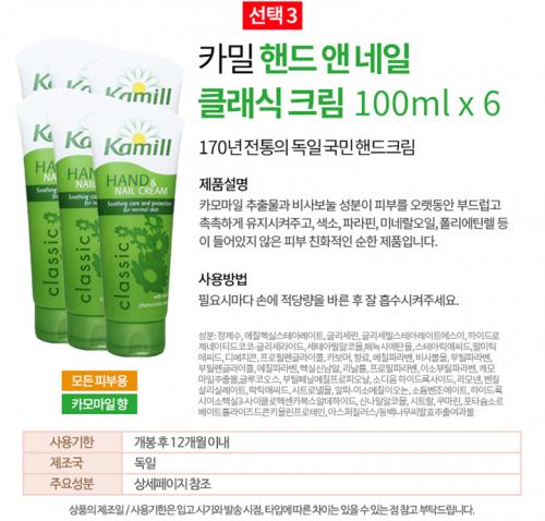 카밀 핸드 앤 네일 클래식 크림 100ml 6개에 마스크팩 1개를 끼워주는 구성입니다.