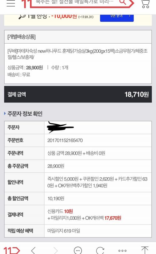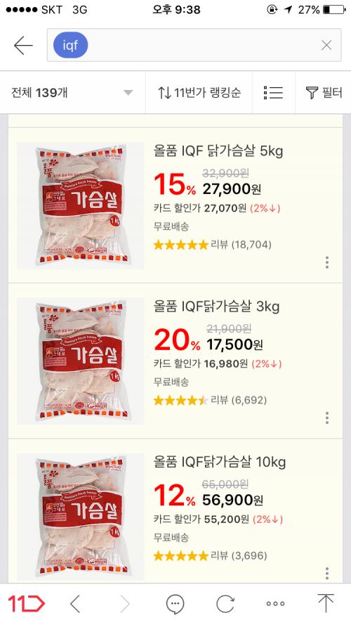 >> 11번가에 iqf닭가슴살로 검색하고 쿠폰 적용