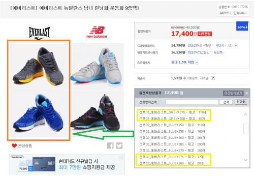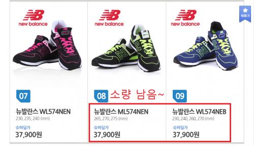 (같이 구성된 뉴발란스는 추가금이 붙어 3만원 이상인데다 작은사이즈 위주라서 선택폭이 작습니다.)