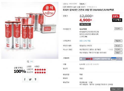 후지쯔 알카라인 건전지 입니다. 올킬특가로 4900원에 나왔습니다.