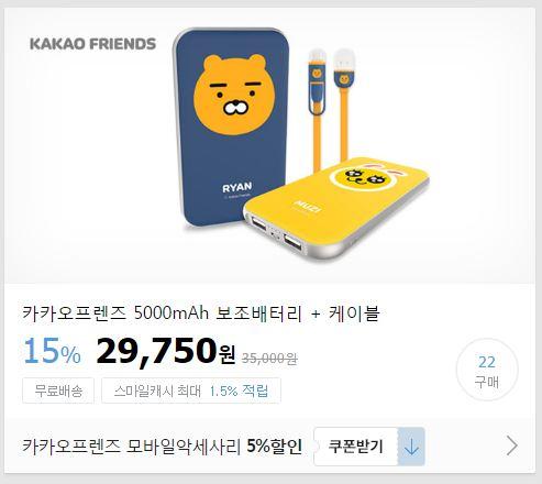 카카오프렌즈에서도 이제 보조배터리가 나오네요