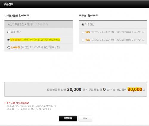 로그인해서 결제창까지 넘어가면 쿠폰 조회에서 떠요 | ||
