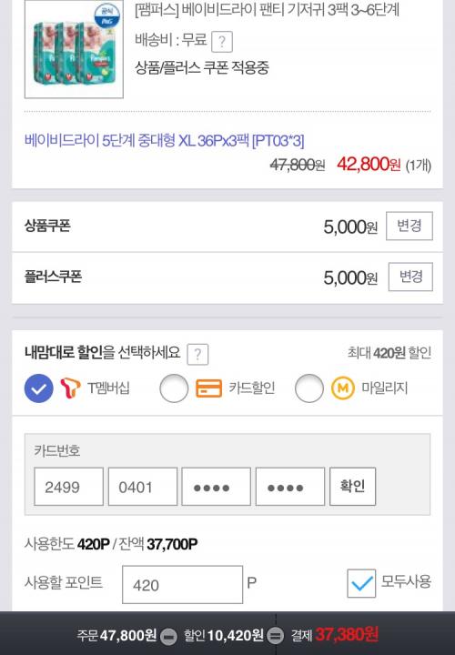 저는 5단계가 필요해서 4000원 추가금 붙은 금액에서 만원 할인되고 티멤버십 할인해서 37,380에 구입했어요