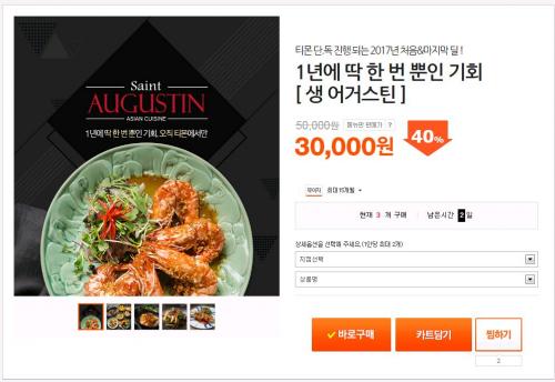 할인은 좋은데 생어거스틴 가격 검색해보니 ㄷㄷ 하네요 푸팟퐁 커리랑 새우 볶음 시키면 5만 ㄷㄷ | ||