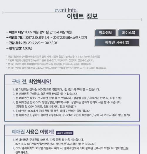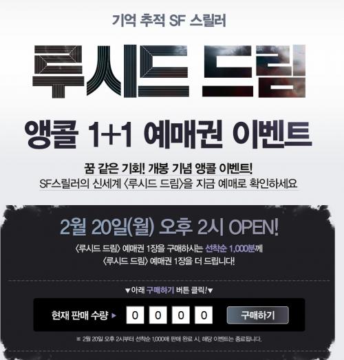 2시에 cgv 루시드드림 1+1판매하네요
