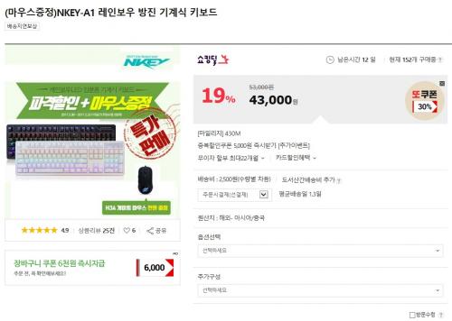 네이버 지식쇼핑 기준 NKEY-A1 검색시 39900원 최저가 나오는데 마우스 사은품 증정도 없을뿐더라 방진 청축이