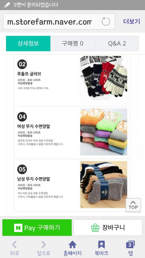 장갑, 양말 모두 필요한건데 너무 늦어서 아쉽네요 옵션 1~5번은 없네요 | ||