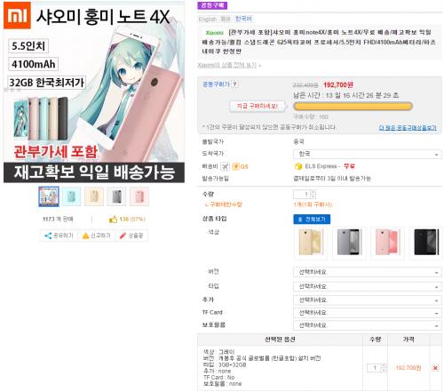 추가로 전에 옥션에서 주문한 홍미4프라임이나 노트4x가 어제쯤 잔뜩 한국에 들어와서