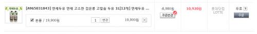 [옥션] 연세두유 검은콩&고칼슘 1000ml 12팩 (19,900원/무료)