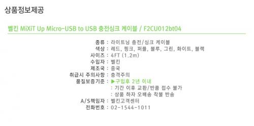 이블 사진에도 떡하니 2년무상 AS써있는거 보이실껍니다 거기다 혹시몰라 제가 다른곳 찾아봤는데 이케이블 동일