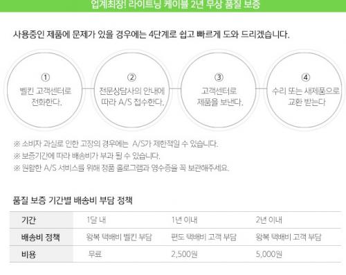 한 디자인 8핀케이블 정보도 봤는데 2년무상 AS로 되어있습니다. AS처리기준은 1달동안 무료택배로 1년이내는