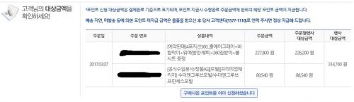 *포인트 신청 대상금액은 결제완료 기준으로 표기되며, 포인트 지급시 수령완료 주문금액에 한하여 해당 포인트 금액이 지급됩니다.