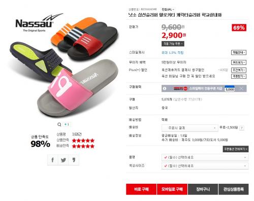 옥션 올킬 상품으로 낫소 슬리퍼가 2900원에 판매중입니다 참고로 2개 이상구매시 무료배송 된다고 합니다 !!