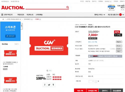 영화예매권 30% 할인해서 7,000원에 구매 할수 있습니다.
