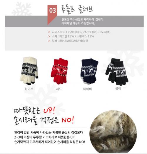 3번 루돌프 글러브 장갑 5종, 4번 여성무지 수면양말 5종 남았네요