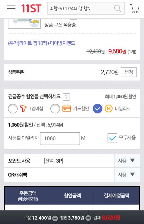 11번가 앱에서 22% 쿠폰과 11% 할인 받으면 8620원입니다
