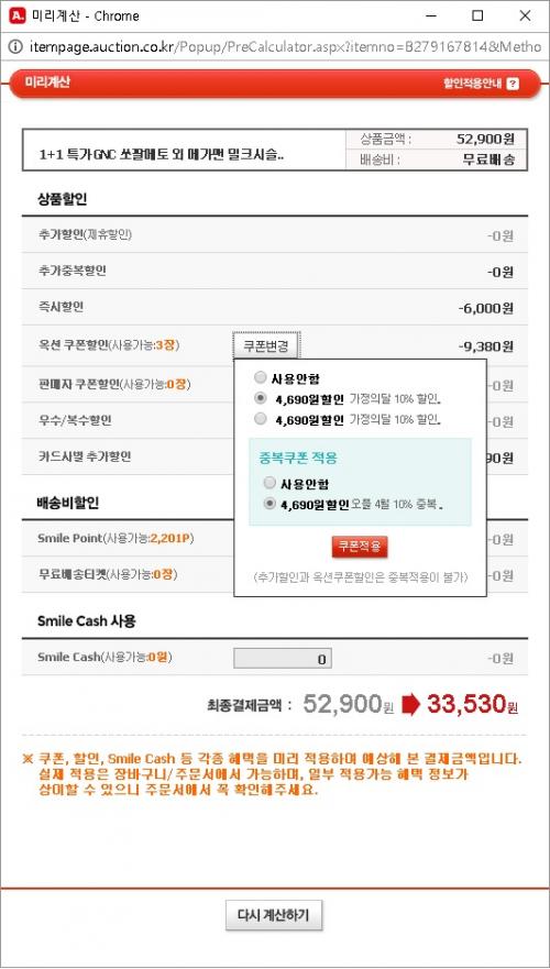 가정의달 10% 4690원, 오플쿠폰 10% 4690원 카드할인 10% 3990원씩 할인됩니다