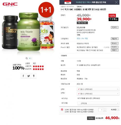 GNC 밀크씨슬 1300mg 60정 2세트 33530원 나옵니다