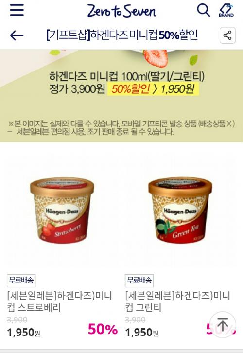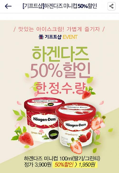 하겐다즈 미니컵 100ml (그린티/스트로베리)입니다.