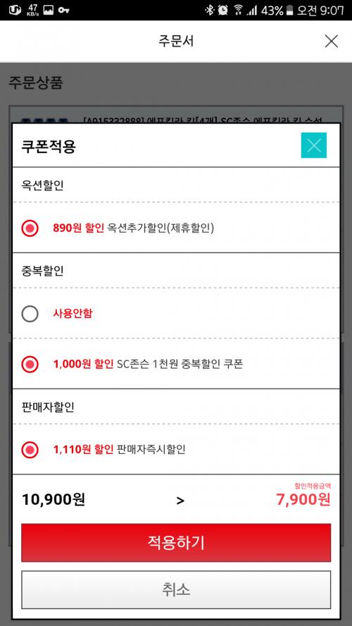 밑에서 중복할인쿠폰 천원 받고 장바구니 담기.