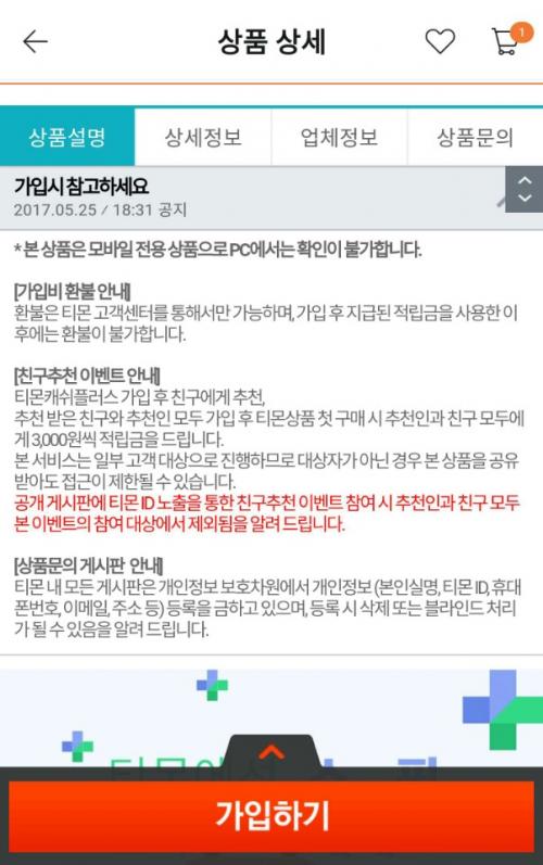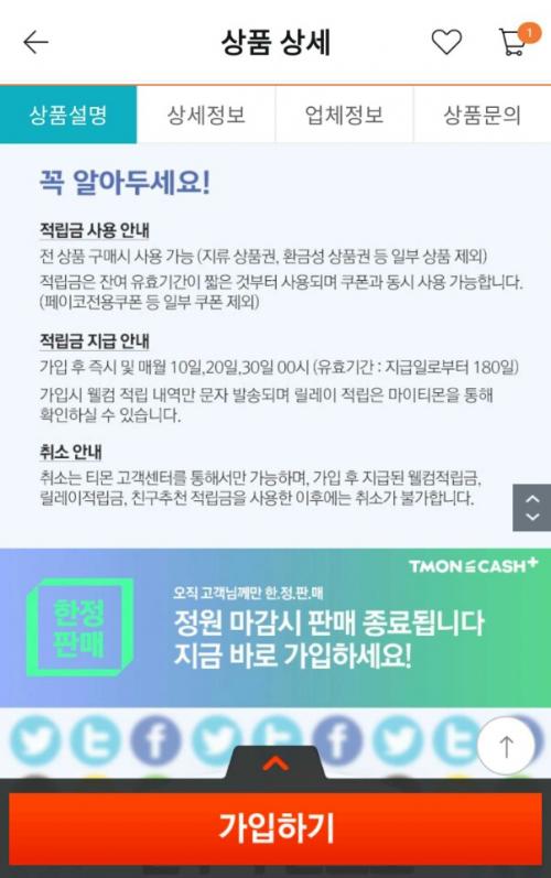티몬캐쉬플러스에 5만원 주고 가입하면 만원 적립금이 생기고 6달동안 9만원의 적립금이 생깁니다.