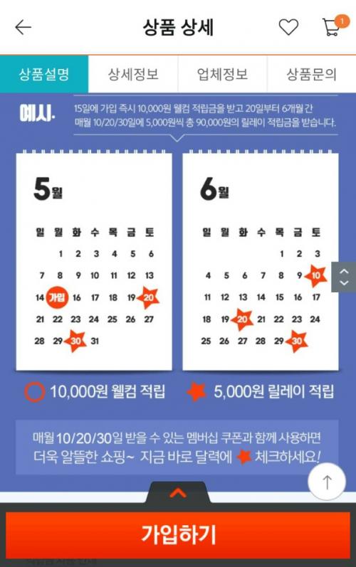 맨처음 5만원 적립이 아니라 가입후 첫구매하면 만원 적립, 추후에 9만원 적립이에요. | ||