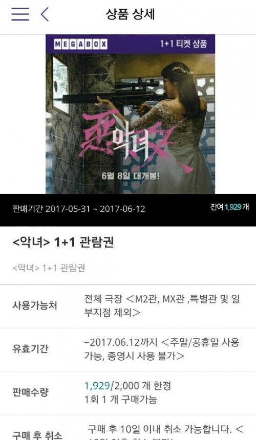 ·유효기간 :~2017.06.12까지 <주말/공휴일 사용가능, 종영시 사용 불가>
