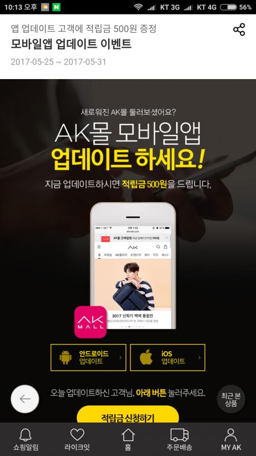 1.ak몰 앱을 깔고 들어가서 응모 버튼 누르면 이벤트로 오늘까지만 500원 적립금을 줍니다. 받으시고~