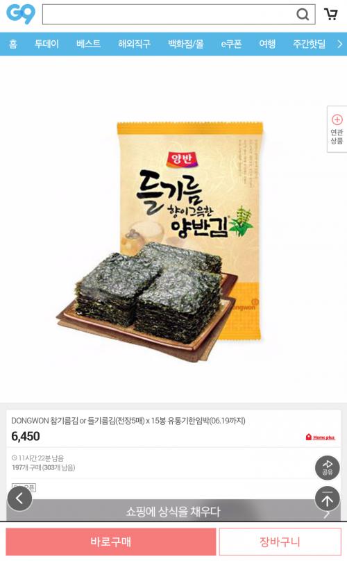 동원 양반김 맛있는데 삼시세끼 회사에서 먹어서 먹을 수가 없네요 | ||