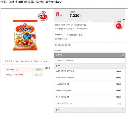 감사합니자. 진라면 순한맛으로 20개 샀어요^^ | ||