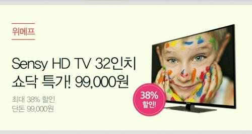 가성비 갑 오브 갑으로 알려진 Sensy TV 32인치가 99,000원에 올라왔네요.