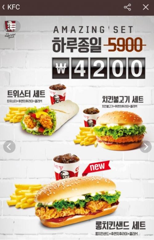[KFC] 트위스터/치킨불고기/롱치킨샌드 세트 (4,200/무료) > 국내핫딜