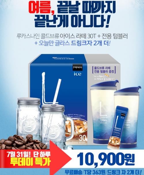 루카스나인 콜드브류 아이스라떼30T+전용텀플러+ 오늘만 글라스 드링크자2개 사은품으로 준다고 해요.
