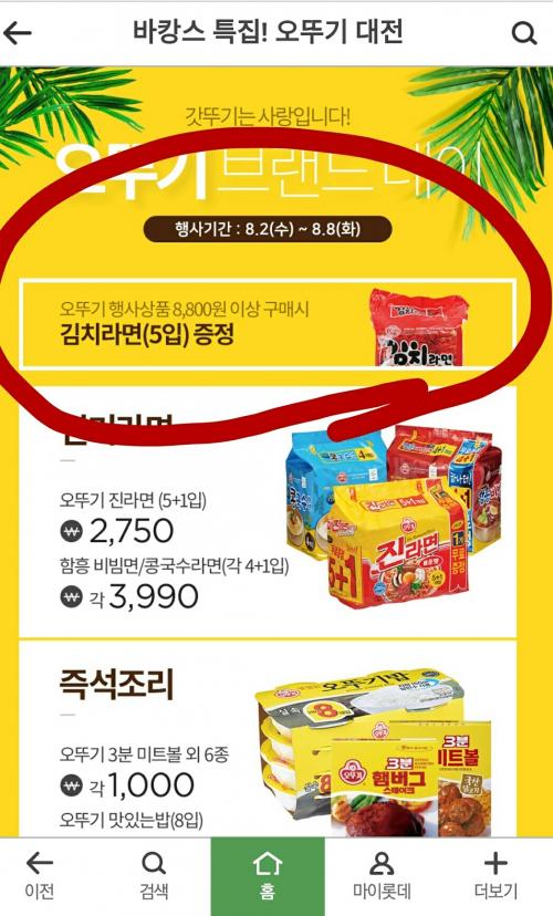 앱에서 기획전 탭으로 넘겨서 아래쪽에 보면 오뚜기 기획 행사합니다.
