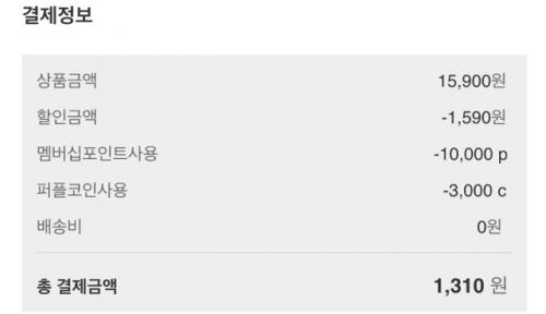 이렇게 총 10000포인트+3000포인트+10%할인쿠폰+무배쿠폰 조합으로