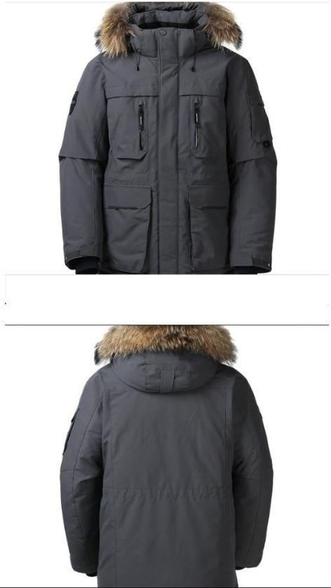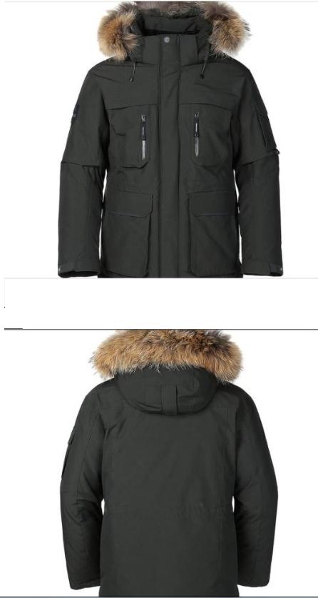 야상 스타일 구스다운에 천연 너구리모피입니다.