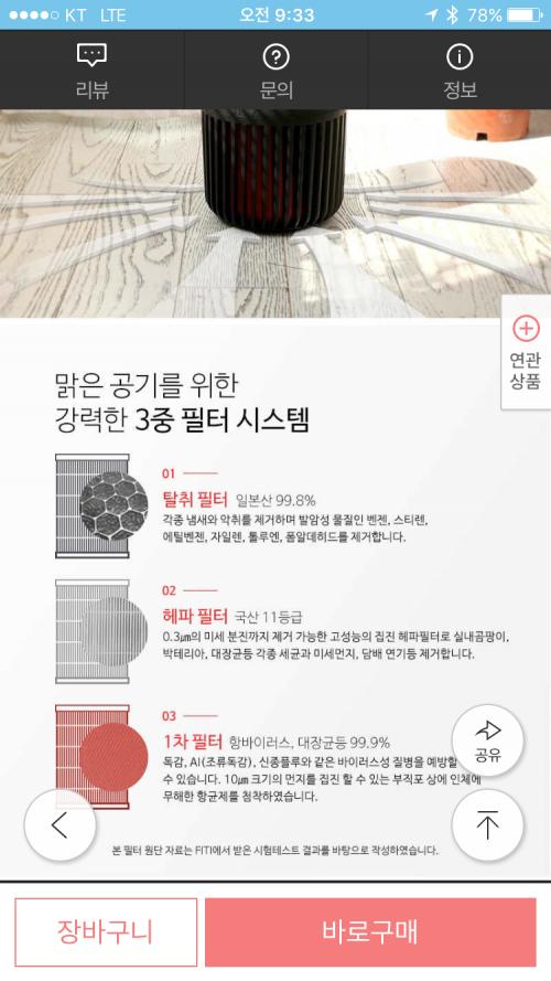 공기청정기 팬소음이 발생할텐데. 스피커를 같이 붙여놓은건 알 수 없는 조합이네요. 헤파필터 등급도 좀 그렇네요. 가격이 이정도라면 12나 13은 돼야 되겠네요. | ||