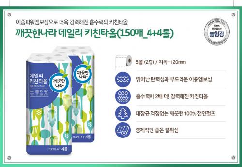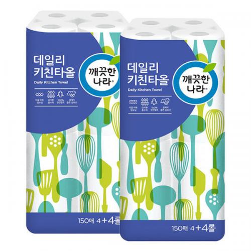깨끗한나라 데일리 키친타올 150매 x 4+4롤 x 2팩