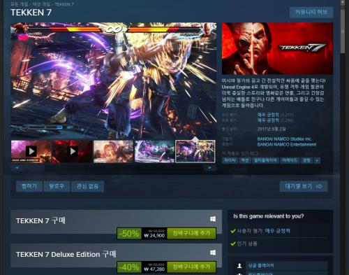 철권(TEKKEN) 7 \49,800 -> \24,900 (50%)