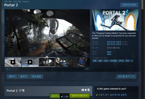 포탈2 2300원에 샀었는데 200원 내렸네요 ㅋㅋ | ||