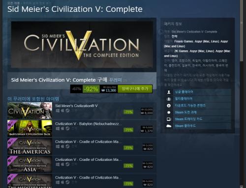 문명V 컴플리트 에디션 \161,700 -> \13,300 (-92%)
