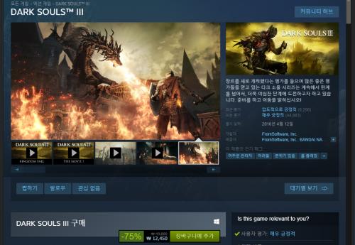 다크소울 III \49,800 -> \12,450 (-75%)