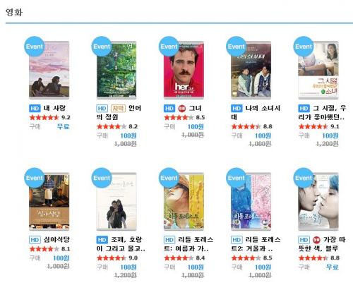 나머지 100원딜 영화들은 그대로 보시면 되겠습니다.^^