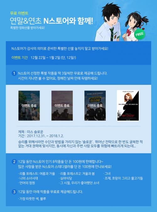 너의 이름은 - 내사랑 - 청년경찰 - 미스 슬로운 순으로 진행이 됐었고,