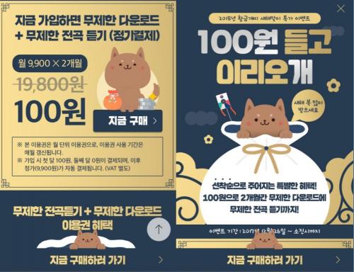 삼성 밀크[milk]가 삼성 뮤직 [Samsung Music] 으로 바뀌고 오랜만에 진행하는 100원 이벤트 네요..