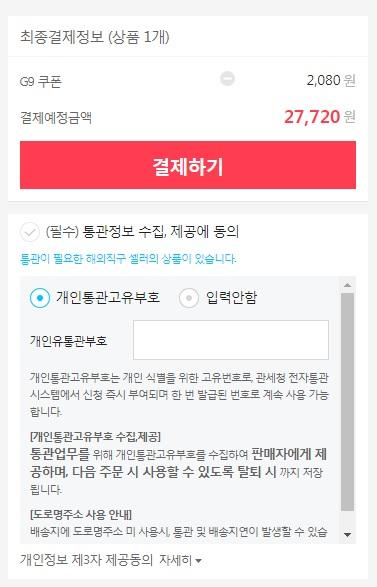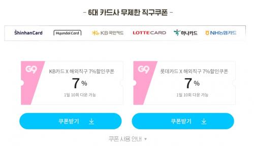현재 직구제품 6대 카드사 7% 쿠폰 발급중으로(신한/현대/KB/롯데/하나/NH),