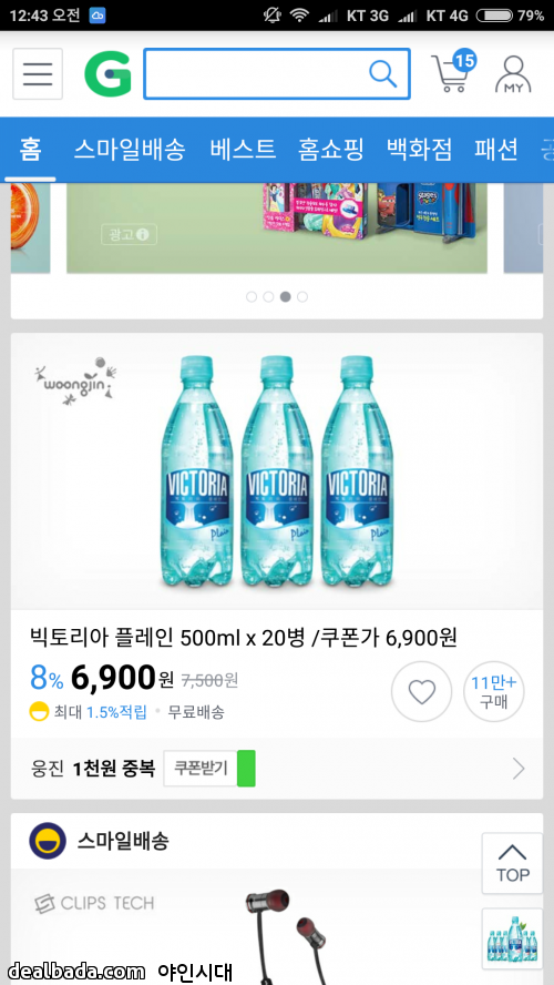 탄산수 플레인 40개 샀습니다 40개사면 1000원 중복할인까지 적용되어 13000원에 살수 있네요 | ||
