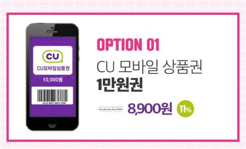 위메프에서 CU 모바일상품권 1만원권 11% 할인판매중 입니다.
