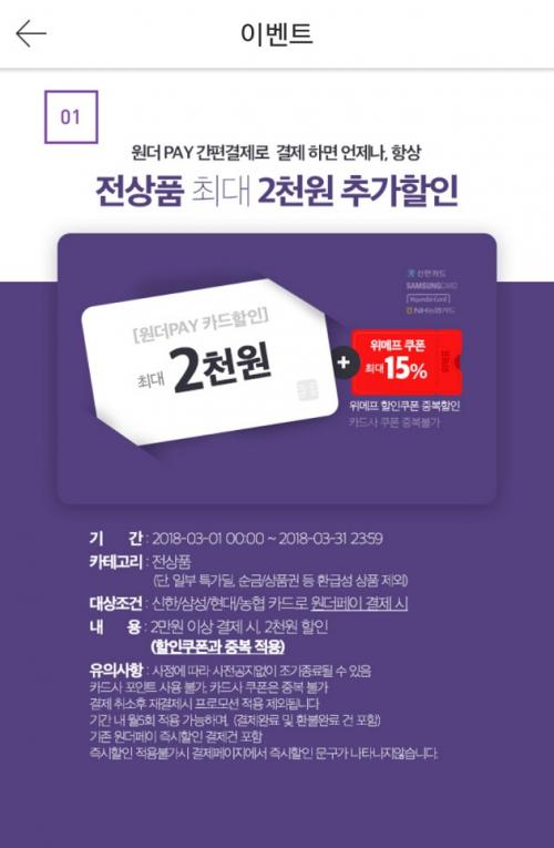 여기에 모바일에서 원더페이 적용 가능 카드로 구매시
