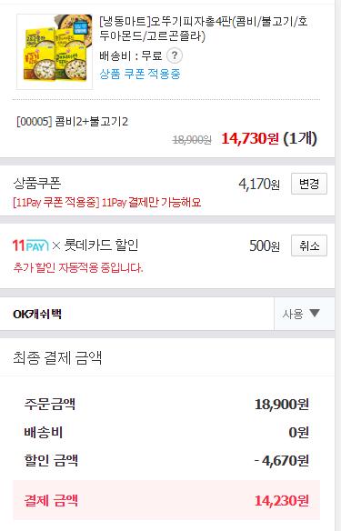등급11%할인쿠폰 사용하면 1850원 할인인데.. 그러면 20원차이로 보너스쿠폰 사용이 안되네요 ㅋㅋ
